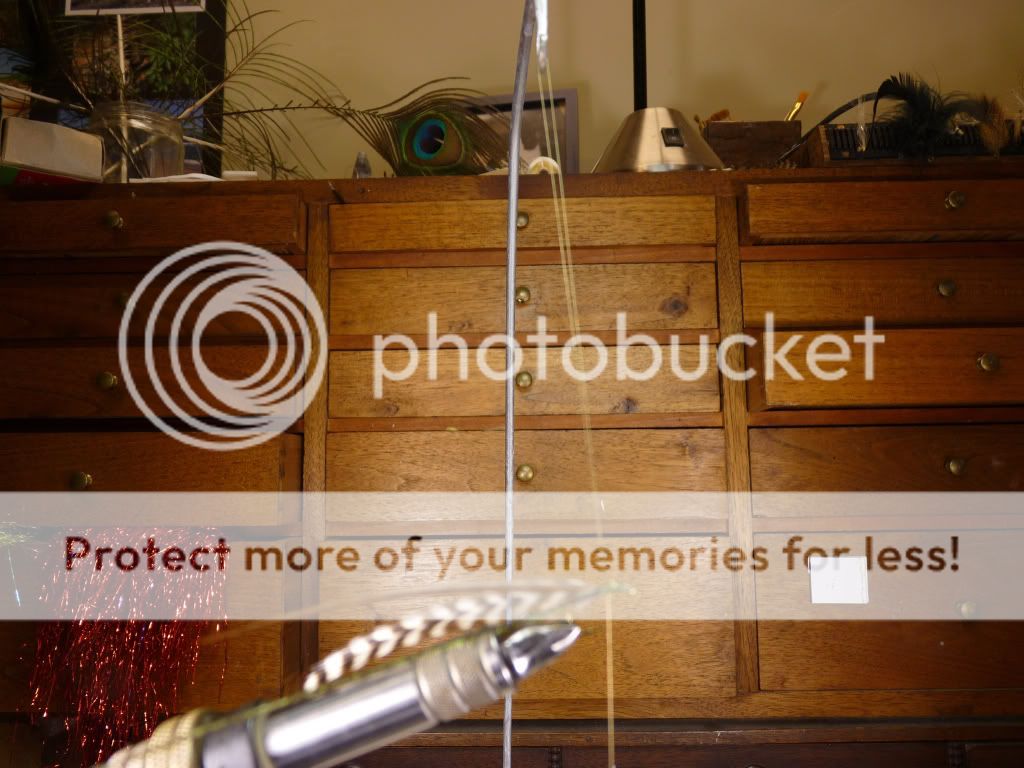 Forth- tie in a piece of mono and bend it up alongside the loop, then wrap it onto the loop, upwards for about a quarter inch, this stiffens and fattens the loop for when you wind the hackle.