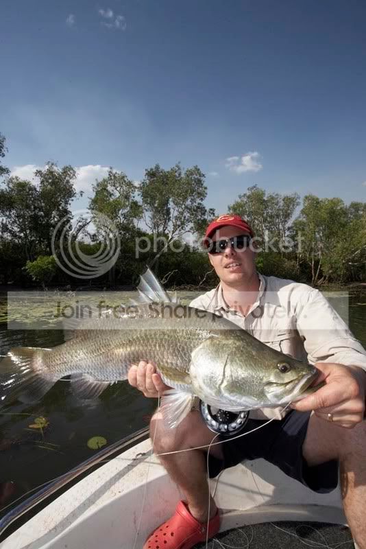 We fish for the saratoga from first light to mid morning then when the water warms through the day the barras become active – Â barramundi are always the main game.