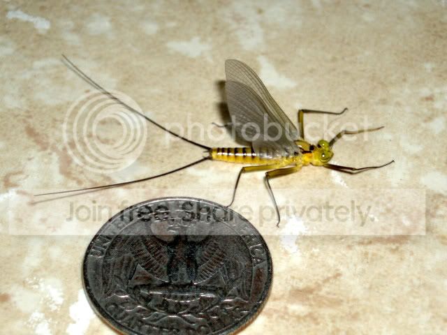 Another possibility is an eastern green drake (Hexagenia rigida).  It’s that time of year for the drakes to start popping (we’ve started to see some around here).  The name can be somewhat misleading because they often actually have more of a yellow/brown coloration.  That would be guess.  Will, do you think that’s a possibility?