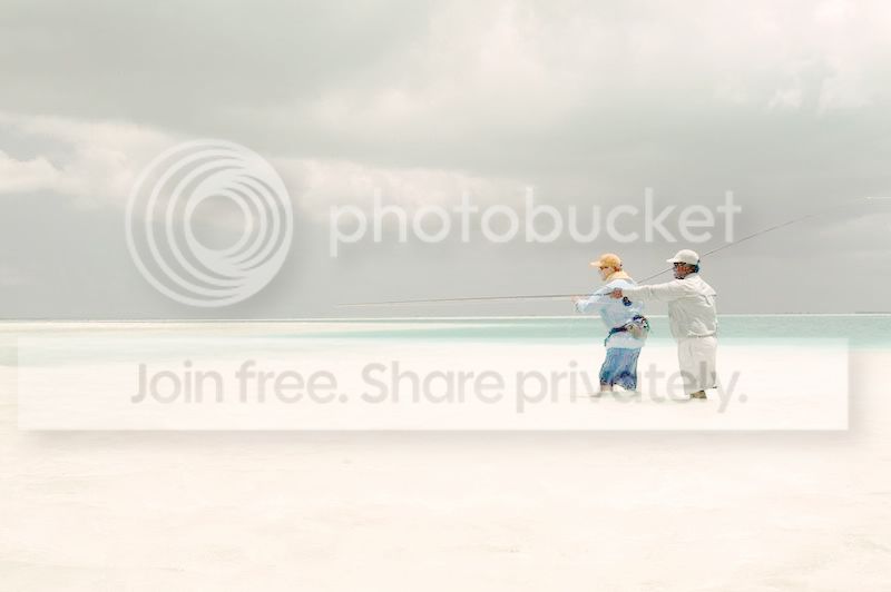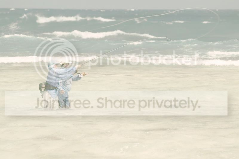 This is one of my favourite pics from over there. This is at the Korean Wreck end of the island. The tide is still high so there’s considerable wash coming over the reef. The bones will swim up the beach with a surging wave – right up the sandy slope but its steep and you have the briefest window to geta fly in front of them before they wash back down with the wave – about 5 seconds and it has to be right on a fast moving target thats travelling up and down the beach. I think its the toughest fly fishing presentation I’ve EVER come across. The concentration required is evident in the body language of the guide and client. It was a day with a high sheen of cloud – very difficult polaroiding conditions, but great for fish photography.