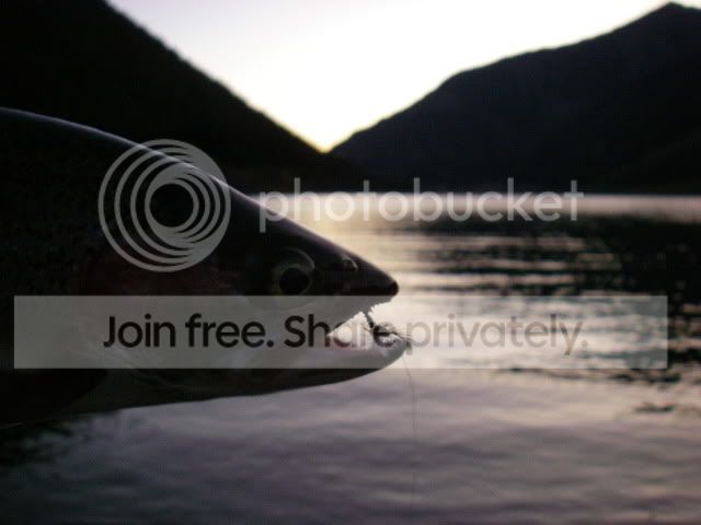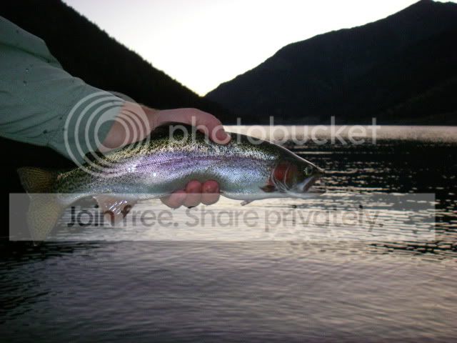 As I passed Quake Lake shortly before dark, I glanced down at the lake and notice the water boiling with rising fish.  Needless to say, I quickly found a place to pull off, grabbed my rod, and ran down to the lake without even taking the time to put on more appropriate footwear than my flip flops.  There were fish rising everywhere, and after much observation, I realized that they were rising to brownish mayfly of about a size 16 (an epeorus spinner to be exact).  I tied on a worthy fly, and got two quick fish before darkness surrounded me.