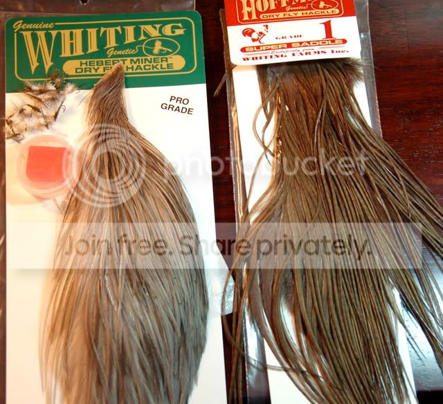 As for tying BWO, I have learned that selection of feathers is crucial. I have switched from medium-grey dun (left) to the dark-dun Hoffman line. The latter gives a much better wing for BWO and this is what the commercial tiers use.