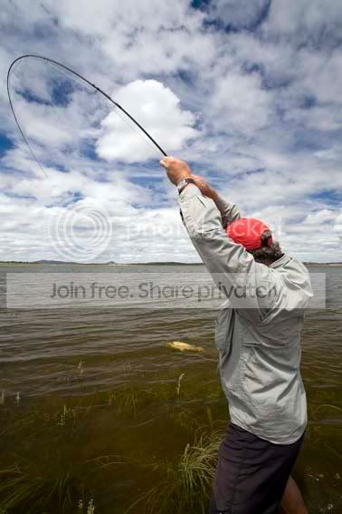 John Haenke, producer of the Fishing DVD and Wildfish series tangling with a good carp at lake Keepit, miles of flats with tailing fish right through summer. The rod is a prototype Sage Bluegill, it was GREAT on the carp.