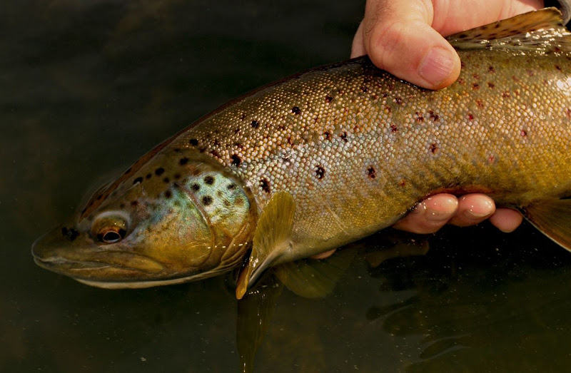 Deep pools with sheer canyon walls hold dark water and cover for browns like the one pictured below.