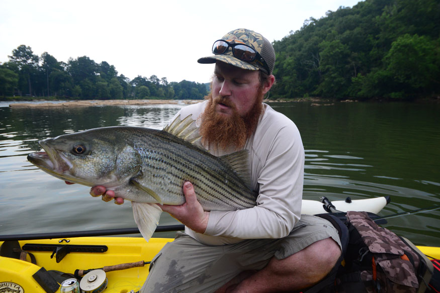 This is only my *second* striper of the year. It has been a terrible year. But I guess this makes up for it a little bit, because this was my personal best (on the fly) at 17 lbs on the boga. It had a frame for a 14 or 15 lb fish but the water has been so high, I think they’ve been cruising around unmolested crashing bait. It was flabby!