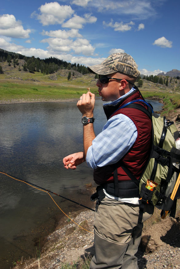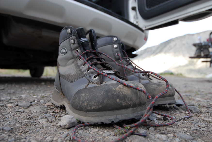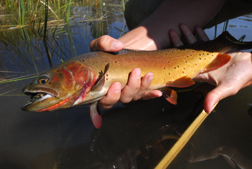 Not flip-flops, Will. Chacos. 🙂 Good for all kinds of hiking. It was warm, and I had heard the hike into Trout Lake was very vigorous, so I wanted to be in something cooler than waders and boots and something less likely to give me blisters than a pair of relatively new wading boots (which, though comfortable in their own right, had raised some pretty sore spots on the hike into Slough). Hence the sandals. Very comfy; no rubbing in the heel area. 🙂 On our last trip to the park, I hiked into Slough in my old Chacos and wet waded there. That was much less pleasant, especially since I saw three snakes that day and just knew there were many more in the grasses around my feet that I couldn’t see. 😮