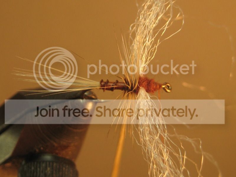 MemberI really like Charlie Craven’s Hi-viz Rusty Spinner but felt it needed to be beefed up a bit to use in some not-so-gentle water I fish in the summer, so I added more hackle fibers for the tail (skipped the split tail entirely) and an extra turn or two of wound hackle. The combination hackle/Congo Hair wing really stands out in lower light conditions, something I appreciate when trying to pick out these flies with the weird silvery sheen the water takes on at twilight. Also prefer goose biot over stripped quill for the body, mainly because I have a lot of them. I’ve used this in sizes 12-18 for everything from Hendrickson-PMD-Epeorus and it’s been pretty productive; being easy to tie makes it a winner, for me, on all counts.