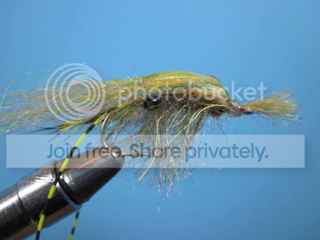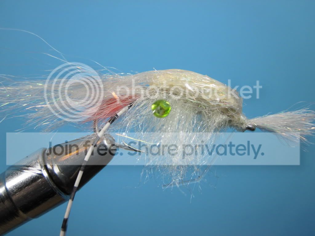 MemberNothing fancy for me. Super Clouser white/clear hair, dumbell eyes, black sharpee to make segmentations. Looks like skrimp